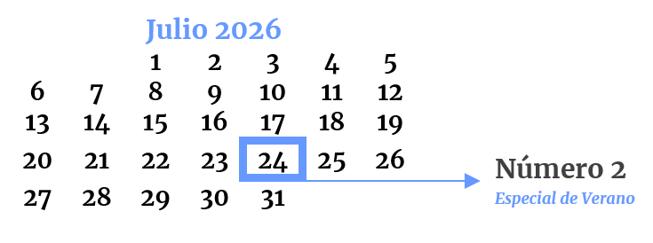 La revista publicará tres ediciones durante 2026, su primer año. Siempre con una estructura clara y una sencilla aspiración: la credibilidad y el diálogo con los lectores. El único número que presentará cada año una singularidad será el que llegue en julio, que será el Especial de Verano, con un tono fresco y un regalo para nuestros lectores.